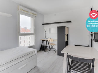 En plein cœur d’Amiens et à 10 minutes à pieds de la gare, cette résidence récente (ouverte en 2019) est proche de nombreux pôles étudiants tels que la Faculté des Sciences, l’UFR d’économie et de gestion, l’IAE et l’IPAG d’Amiens, l’ESC d’Amiens, ou encore l’ISPA. Proche des transports en commun et du parc Saint-Pierre, elle réunit tous les critères pour une vie étudiante épanouie. De plus, la résidence est équipée d’un accès fibre très haut débit offert, d’une salle commune comprenant rétroprojecteur, babyfoot, tables de travail, espace détente, jeux de sociétés et cuisine équipée, d’un local à deux roues, d’une laverie, d’un système de vidéosurveillance et d’un intendant pour gérer la résidence au quotidien. Services ménage et petit-déjeuner en supplément.