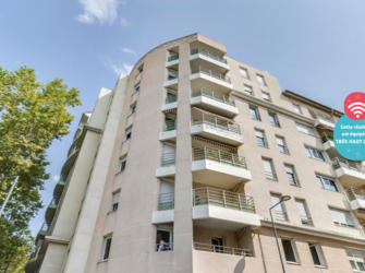 Au cœur de la ville de Grenoble et proche des Grandes Ecoles et des Universités (Grenoble INP, ESC, INP-Génie Industriel et IUT Grenoble II à moins d’un kilomètre), cette résidence vous propose des logements meublés avec salle de bain privative allant du studio au deux pièces. A proximité des transports (Gare SNCF et Tram A et B à quelques mètres) et des commerces (Vival, Carrefour), cette résidence est très calme et sécurisée. Parmi ses services inclus, vous pourrez bénéficier de l’internet illimité, d’un service d’accueil, d’un local à vélos, d’une salle de réunion ainsi que d’un service d’accès. Enfin pour compléter votre séjour, vous pourrez choisi parmi de nombreux services à la carte : laverie, parking, aspirateur, fer à repasser, distributeur, snack et service ménage.
