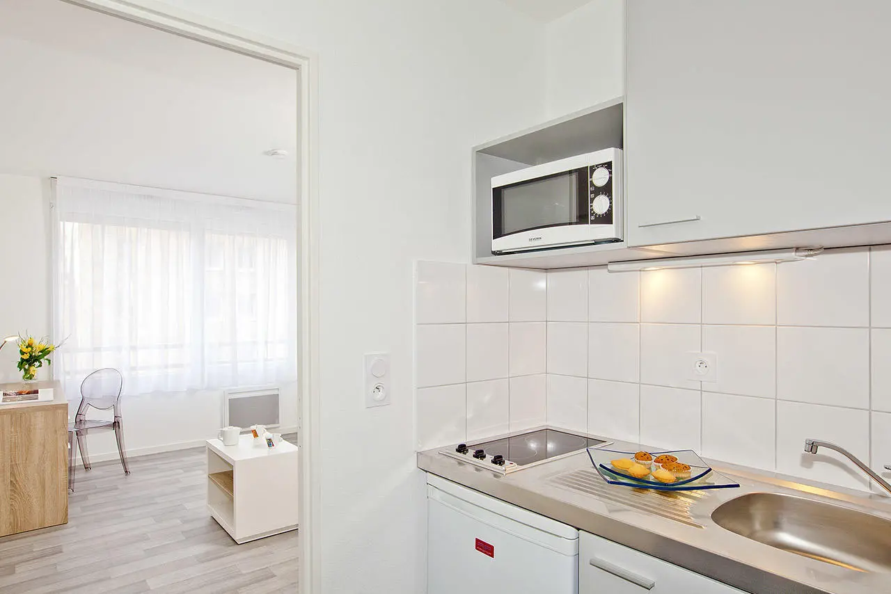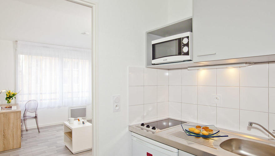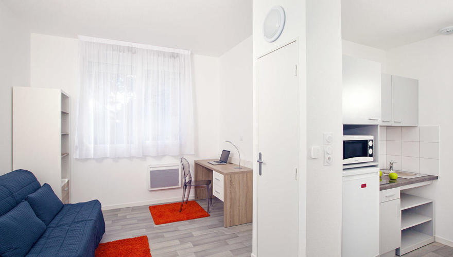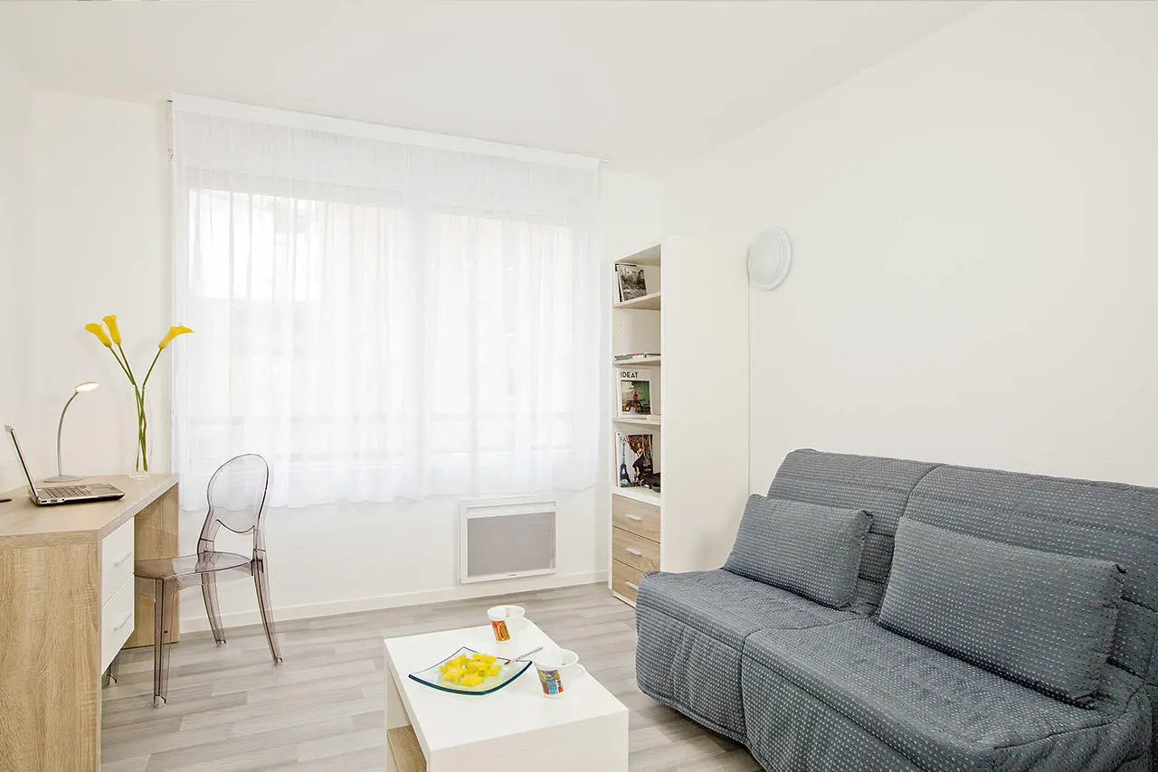 The residence offers studio-type or two-room accommodation, furnished and fully equipped, with many services included or à la carte: secure access to the residence, bicycle storage, unlimited internet connection, gym, loan of linen kit, laundry, parking, breakfast room and cleaning service.