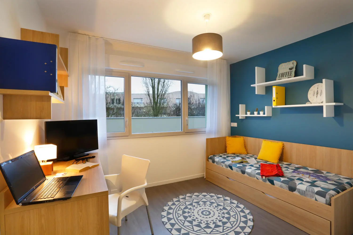 At the gates of the Rennes Villejean Campus, the residence Néméa Appart'Etud Rennes Villejean enjoys a privileged location to access several places of study: the metro station "Villejean-University" 2 min walk, the University Rennes 2 2 min walk, Campus de la Harpe 8 min walk, the Faculty of Medicine 13 min walk, local shops. The 118 practical and comfortable accommodations are composed of: an equipped kitchenette with cupboards, electric hob, microwave oven, refrigerator, a bathroom with shower and toilet, a living room with a trundle bed , table, chairs, desk and wall shelf, TV and telephone socket and an individual EDF meter.
