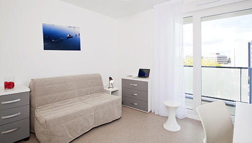 The Stud'City Paris Le Perreux residence is made up of 114 studios with an area between 18 and 29 m². The accommodations are fully equipped with a kitchenette, a bathroom, an office area and a sofa bed. The rent includes heating, electricity, and a wifi internet connection. The residence is ideally located: access to the RER A at 5 minutes on foot (Val de Fontenay Station), and access to the RER E (Nogent le Perreux Station) at 20 minutes on foot. Bus stops can be found at the foot of the residence (lines 113 and 116). By car, access is easy via the A86 motorway. The Val de Fontenay shopping center is located near the residence.
