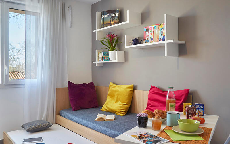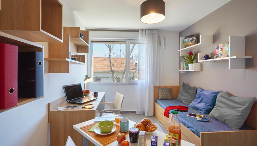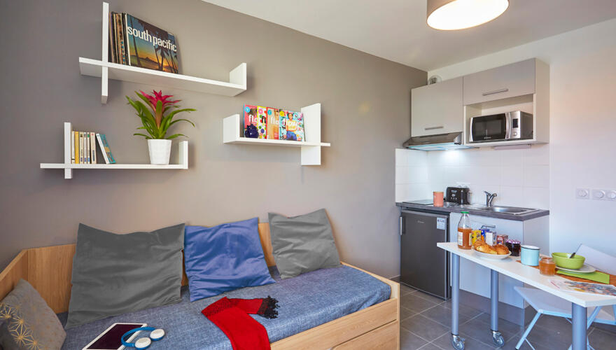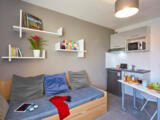 Located in a dynamic environment, the residence Néméa Appart'Etud Montpellier Beaux-Arts, has many assets: faculties, schools and high schools nearby, shops and restaurants in the immediate vicinity.Close to the city center with secure indoor parking. The 104 comfortable and practical accommodation units are composed of: an equipped kitchenette with cupboards, electric hob, microwave oven, fridge, a bathroom with shower and toilet, a living room with a pull-out bed , table, chairs, desk and wall shelf, TV socket and telephone with individual EDF meter.