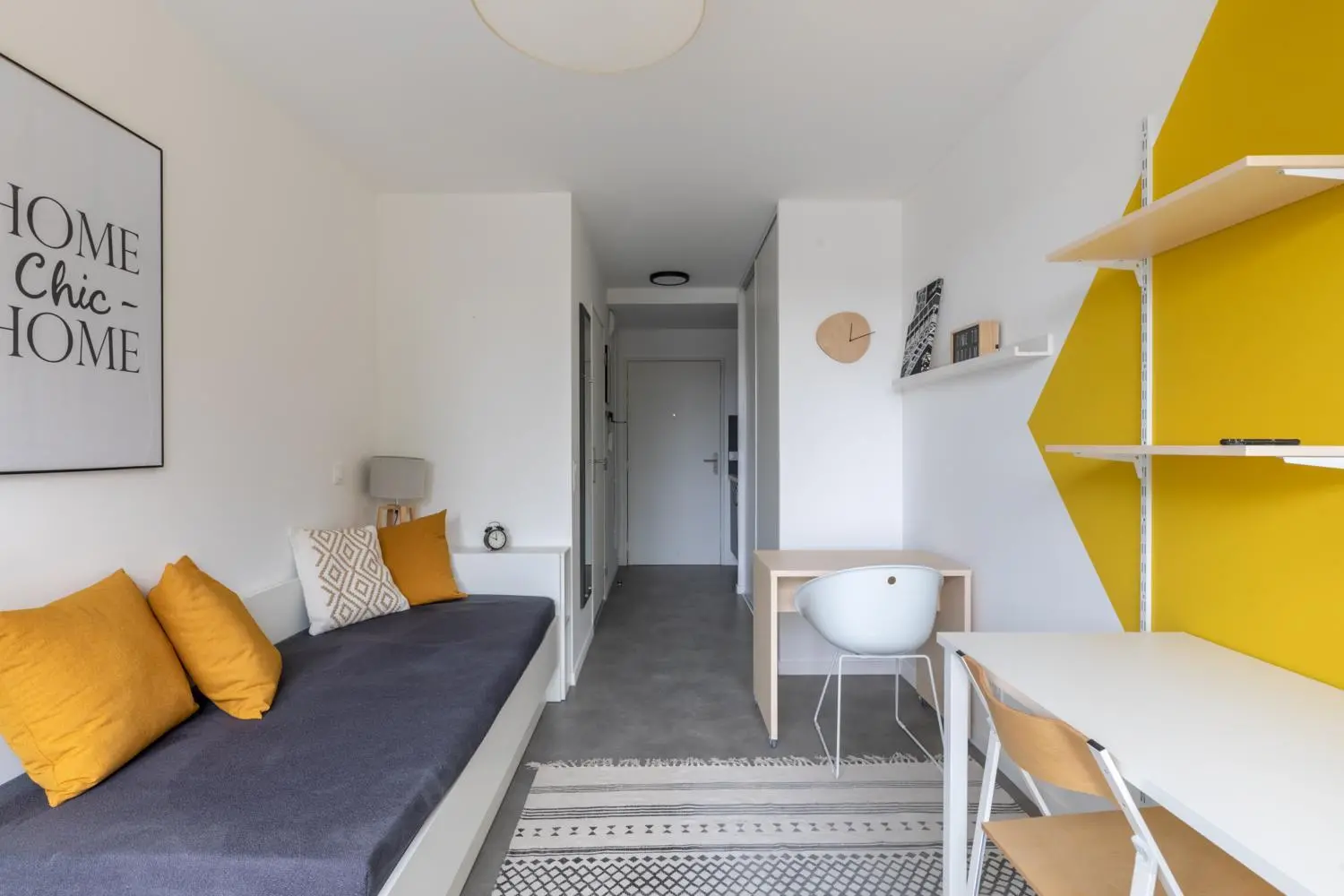 This residence opened in October 2020, is located in the heart of an eco-responsible district undergoing rapid change, offers students an ideal location for their studies. Close to Laplace station (RER B) and a few steps from bus stops, students can easily get to their campuses, or to Paris in less than 30 minutes. This residence benefits from a very high speed access and a study room, to be able to work as serenely as possible. Its other advantages include a two-wheeled room, video surveillance, a cafeteria, an on-site residence manager, an intercom as well as the possibility of renting dishes and / or linens. Cleaning and breakfast services at extra charge.