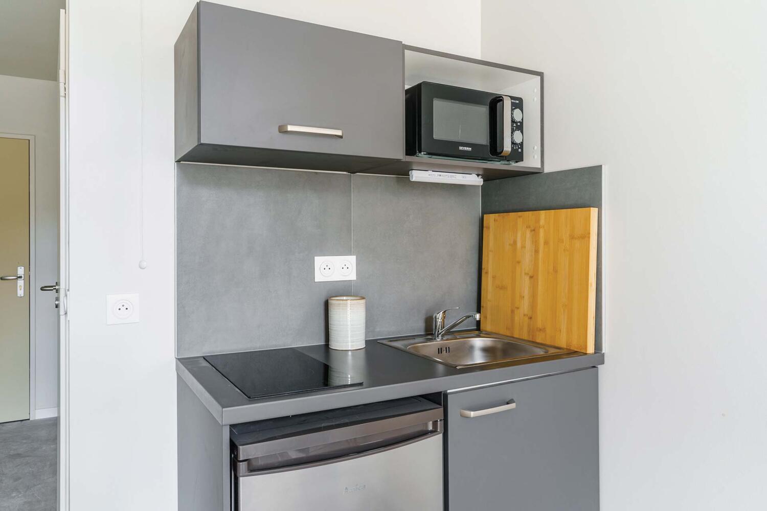 In addition to being in a super cool neighborhood, our Student Factory Nancy residence offers you ultra-stylish furnished apartments! From cozy studios to shared 3-room apartments, our accommodations are designed to offer an incomparable student life experience. Enjoy a cozy bed for well-deserved lie-ins, an office space to work in the best conditions, and an equipped kitchenette to concoct your favorite dishes.
