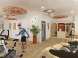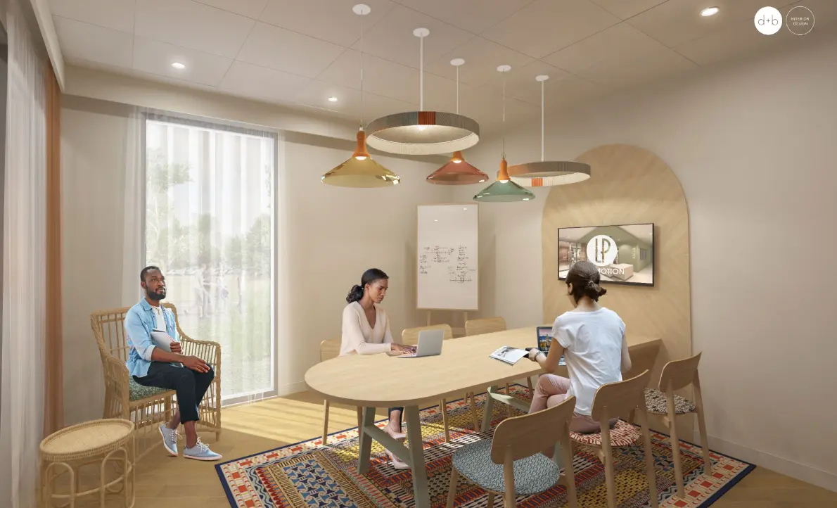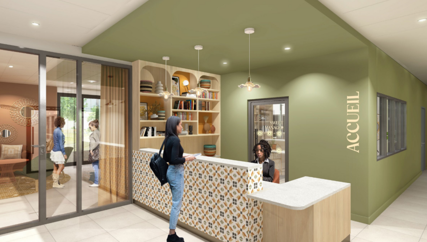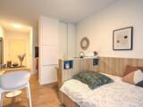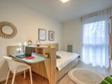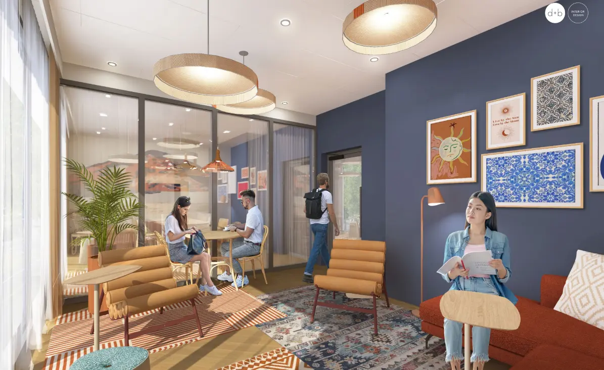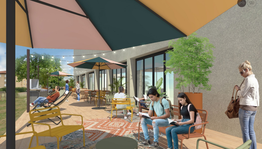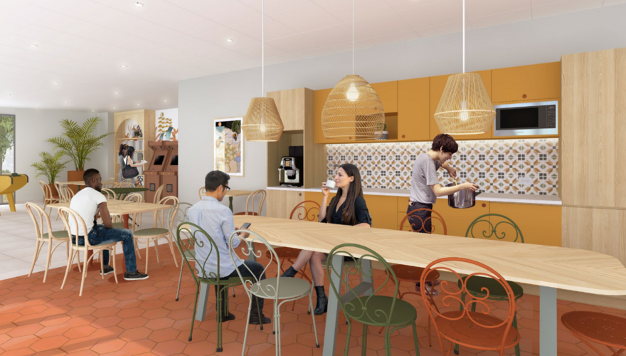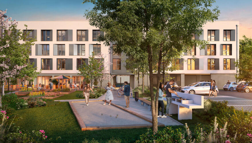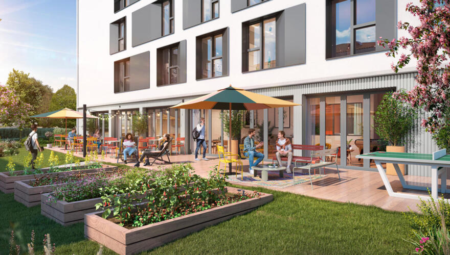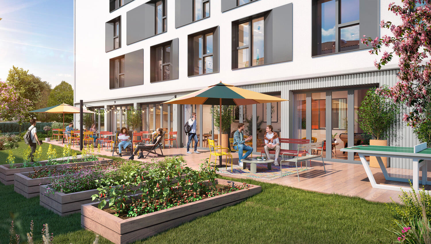 Each apartment is fully equipped, including a functional kitchen, a private bathroom, contemporary furniture, and high-speed internet access. The common areas promote conviviality and well-being: a fully equipped gym, quiet and tastefully decorated coworking spaces, a welcoming co-living space for spending time with friends, and landscaped outdoor areas with a terrace, a bowling alley, barbecue grill, ping-pong table, and vegetable garden.