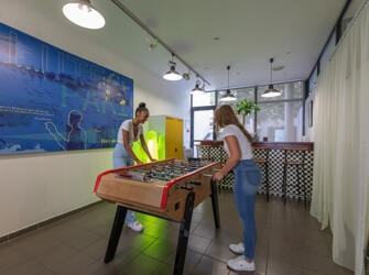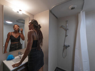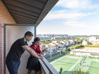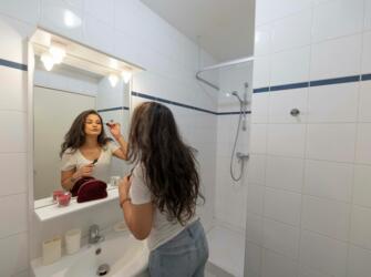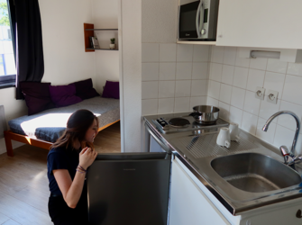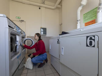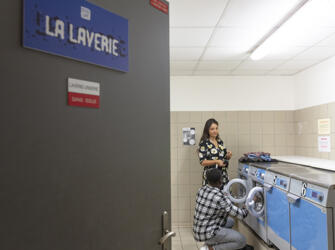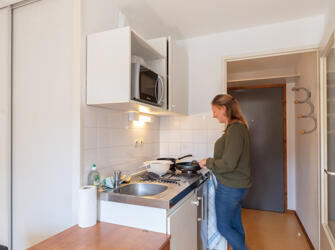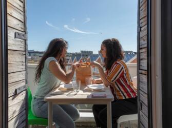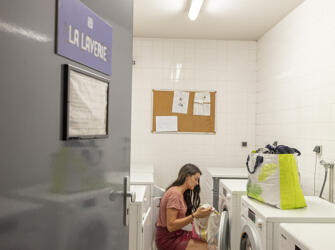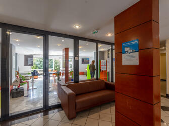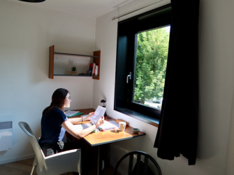 Résidence entourée de verdure, offrant des logements meublés et équipés. Sur place : accueil, wifi, laverie, salle de sport, sauna,… Voir les locations