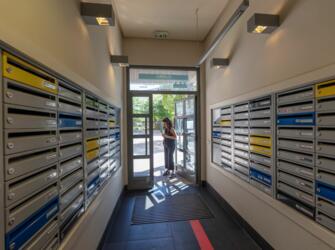 La façade des résidences, ornée de plaquettes de terre cuite au premier et au dernier niveau, est à la fois sobre et élégante. Les l… Voir les locations