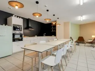 La residencia ofrece alojamiento amueblado y equipado, adaptado a las necesidades de los estudiantes: cocina americana, espacio de trabajo y conexión a Internet. Se ofrecen numerosos servicios como lavandería, desayuno o gimnasio. El ambiente es agradable y seguro, ideal para combinar estudios y relax.