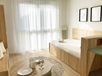 La residencia "City & Park" te da la bienvenida en un ambiente cálido y moderno. Ubicada cerca de tiendas, transporte público y del centro, ¡el trayecto entre tu apartamento y tu entrenamiento ya no será un problema! Los 110 apartamentos de la residencia (estudios de 20 a 35 m²) están completamente amueblados y equipados para tu comodidad una vez en la residencia: - Ropa de cama para 1 o 2 personas, según el tipo de alojamiento (ropa de cama incluida; cama hecha a la llegada con cambio cada dos semanas) - Armario - Cocina americana completa (vitrocerámica, fregadero, nevera, microondas, vajilla, muebles de almacenaje) - 1 mesa, 1 escritorio, 3 sillas - Baño y WC - Conexión a internet de alta velocidad, así como toma de teléfono y televisión - Lavandería con lavadora y secadora compartidas - Préstamo de aspiradora y plancha. Todos los apartamentos son elegibles para la ayuda CAF y el alquiler incluye todos los gastos.