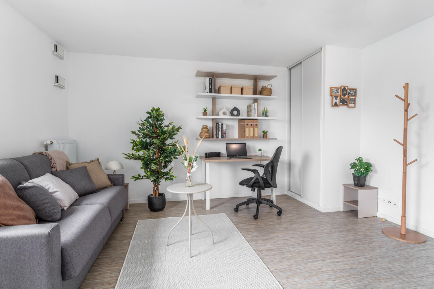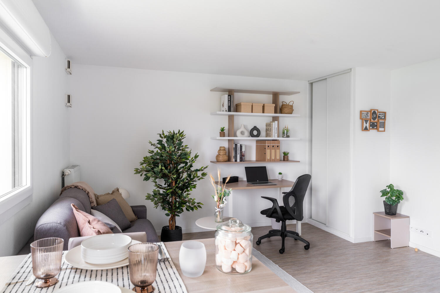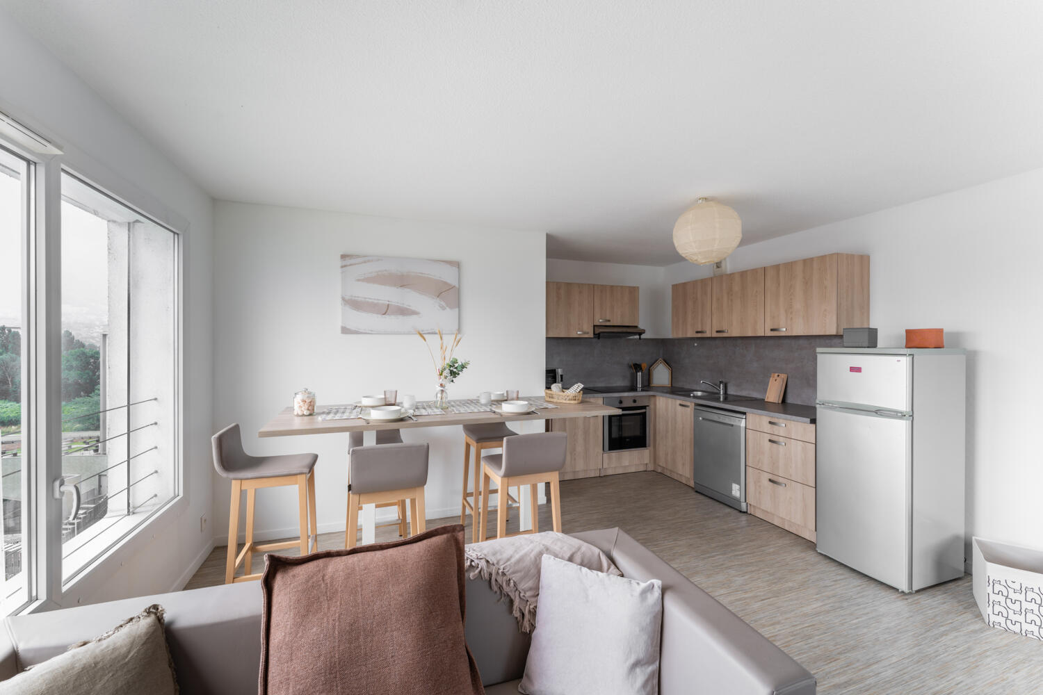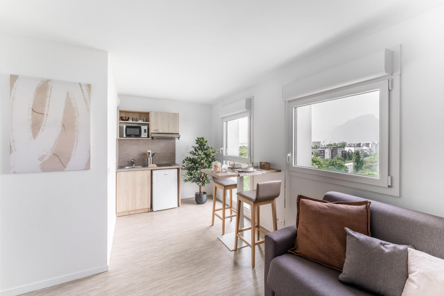 La residencia de estudiantes Campus des Sciences de Grenoble es una residencia totalmente segura. Se beneficia de zonas comunes que incluyen un jardín japonés privado y una terraza amueblada, así como de un moderno gimnasio que los estudiantes pueden aprovechar al máximo para relajarse. Una sala de estudio está a su disposición. Los apartamentos están completamente amueblados y equipados con un espíritu contemporáneo. La residencia ofrece estudios y T1 de 20 a 27 m² con terraza, pero también T4 de 82 m² diseñados para alojamiento compartido de hasta 3 personas. En las afueras de la capital de los Alpes, el Campus de Ciencias tiene una ubicación ideal y el transporte público, incluido el tranvía, a las puertas de la residencia ofrece numerosas posibilidades para viajar al centro de Grenoble y a los principales lugares de educación superior. Los inquilinos se benefician de bicicletas siempre que puedan usarlas según sea necesario, estacionamiento cubierto e instalaciones de lavandería por un costo adicional. En el alquiler se incluyen los gastos de agua caliente, calefacción y electricidad. Una recepción está a disposición de los estudiantes para la gestión diaria dentro de la residencia y recepción de paquetes. Las tarifas de solicitud, el acceso a Internet de alta velocidad en el alojamiento y las zonas comunes son gratuitos.