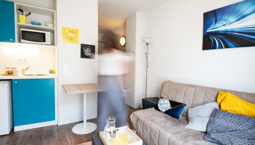 Ideal para adultos jóvenes que quieran recorrer los cuatro rincones de Lyon con facilidad. Desde el dinámico distrito de Jean Macé hasta las agradables orillas del Ródano, pasando por la animada península y la estación de tren Part Dieu. Elegir la residencia Cardinal Campus ESTUDIS 7 significa elegir: - Servicios a la carta, - Zonas comunes amuebladas, - Aparcamiento y zona de 2 ruedas. Benefíciese también de una conexión gratuita a Internet de banda ancha. Tranquilidad gracias al sistema de seguridad de la residencia (videovigilancia y acceso vigik). La residencia Cardinal Campus ESTUDIS 7 tiene apartamentos amueblados y equipados con (tipología) listos para darle la bienvenida: • Sala de estar que combina ingenio y practicidad que incluye: área para dormir, oficina, comedor y mucho espacio de almacenamiento • Cocina inteligente, bueno -Equipado y fácil de usar: cada mueble incluye vajilla y utensilios. • Baño privado, optimizado y funcional, con inodoro y ducha. Desde 495 € / mes TCC (Copro y gastos de agua fría incluidos) También encontrará eventos durante todo el año para promover el entendimiento entre todos los inquilinos para vivir un año único y cálido. Seguridad sanitaria reforzada Todos nuestros alojamientos son elegibles para CAF ALS.