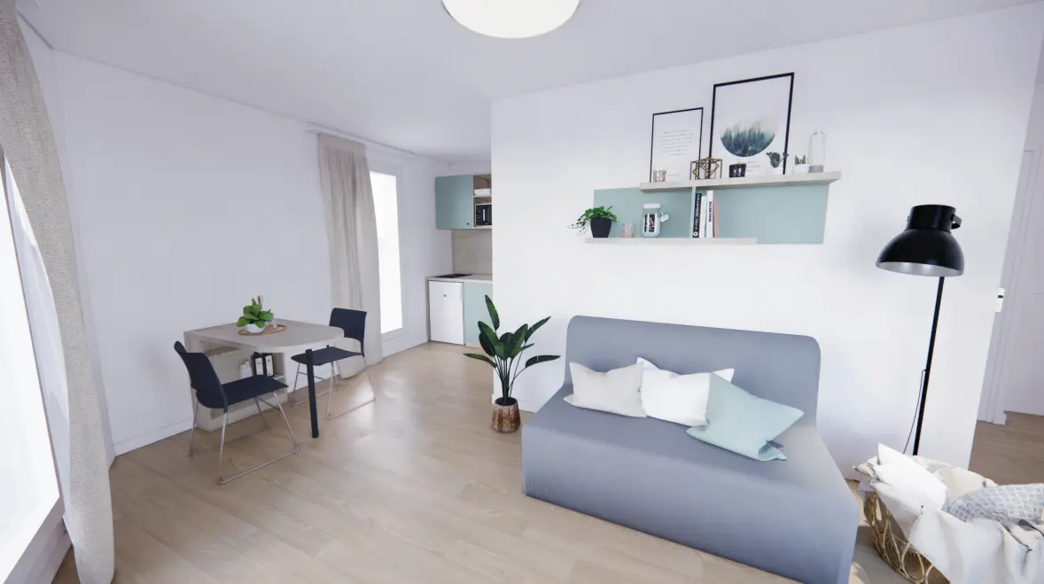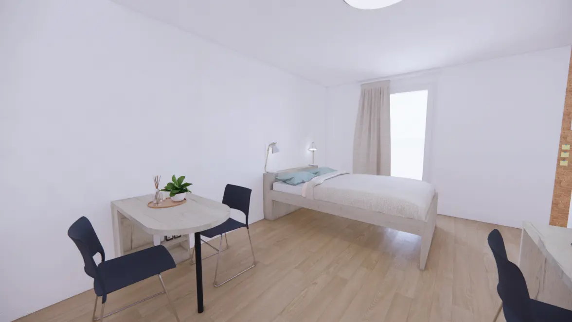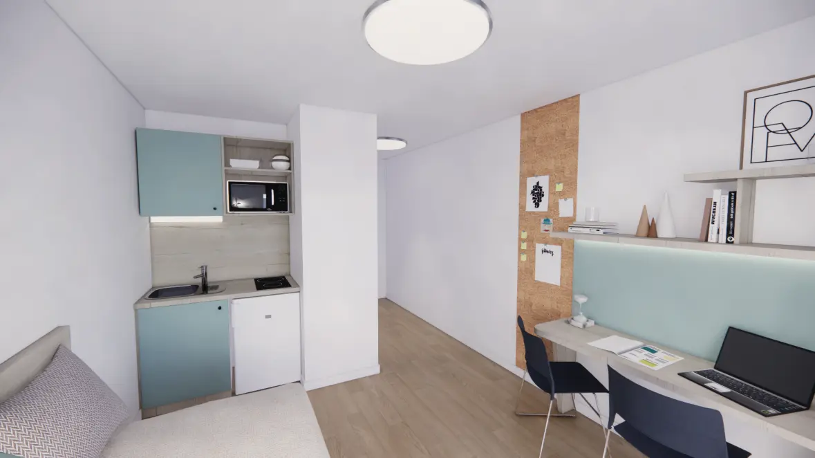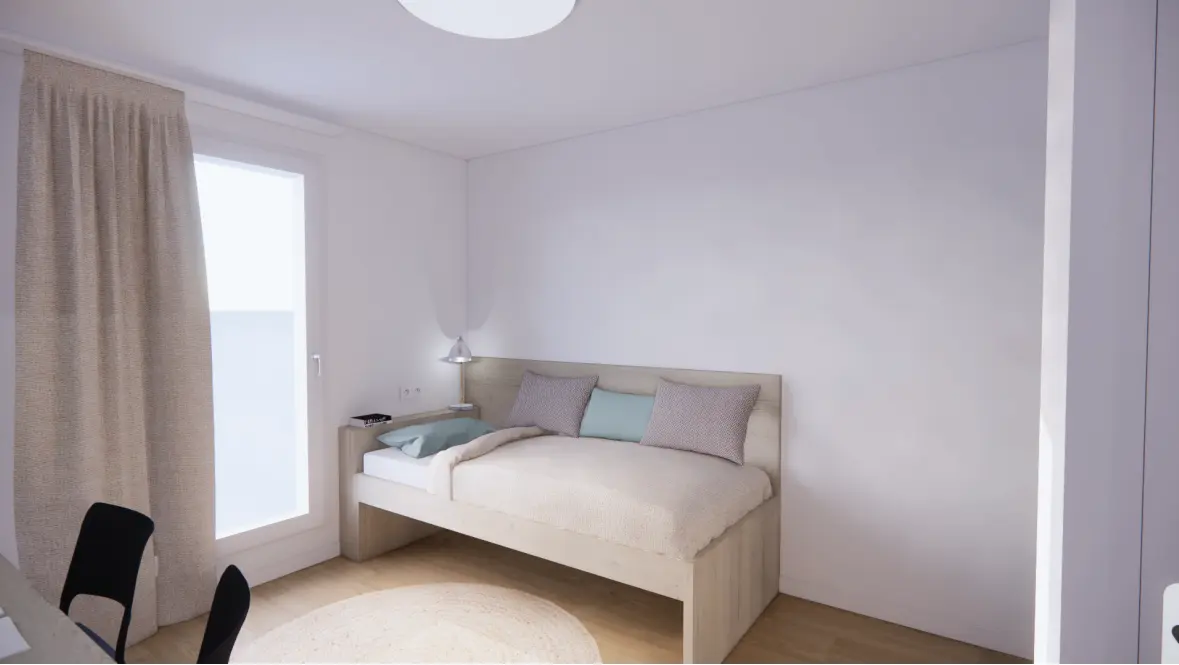 Diseñada para optimizar tu calidad de vida, la residencia ofrece alojamiento para estudiantes amueblado y funcional, desde acogedores estudios hasta apartamentos más espaciosos. Cada alojamiento está equipado para maximizar tu comodidad: zona de cocina totalmente equipada, espacio de oficina para trabajar en las mejores condiciones y baño privado. Estos espacios han sido diseñados para satisfacer las demandas de un estilo de vida estudiantil dinámico y al mismo tiempo brindan un ambiente tranquilo propicio para el éxito.