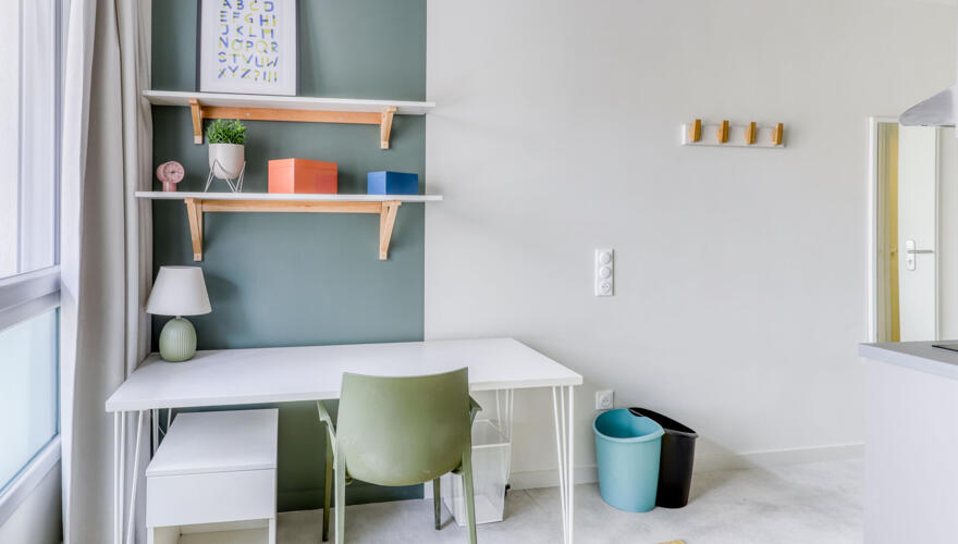 Nuestros apartamentos amueblados, desde T1 hasta T3 colocados, son la combinación perfecta de comodidad y estilo. Con escritorio, cocina pequeña y una cama acogedora, es el lugar perfecto para estudiar, relajarse y disfrutar plenamente de la vida estudiantil. ¿Necesitas un espacio para trabajar o relajarte? Hemos pensado en todo con nuestro coworking y nuestro salón amueblado. La guinda del pastel: estamos justo al pie de una parada de tranvía, lo que te permitirá moverte por la ciudad con tranquilidad.