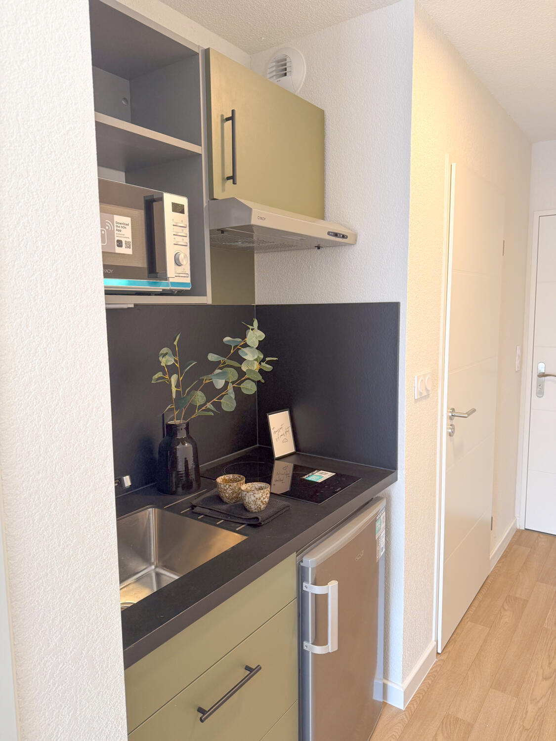Cada apartamento está completamente equipado: cocina funcional, baño privado, muebles contemporáneos y conexión a internet de alta velocidad. Las zonas comunes fomentan la interacción y la relajación: un gimnasio totalmente equipado, espacios de coworking tranquilos y decorados con gusto, un acogedor espacio de convivencia para socializar y zonas exteriores ajardinadas con terraza, bolera, barbacoa y mesa de ping-pong.
