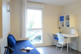 La Résidence se situe en bordure d’un lac et d’un parcours de santé, elle est complètement sécurisée et au cœur d’un parc arboré. Le centre-ville et la gare SNCF sont accessibles en 12 minutes via la Ligne G. Nous vous proposons 171 logements meublés tout confort avec kitchenette équipée (évier, plaques vitrocéramiques, four micro-ondes, réfrigérateur, vaisselle) et salle d’eau indépendante avec grande douche. Les loyers incluant l'eau, le chauffage et l'électricité vous garantissent une maîtrise budgétaire en toute sérénité. Des alcôves situées aux différents niveaux de la résidence permettent d’échanger, travailler ou se détendre.