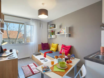 Dans un quartier vivant, animé, à proximité direct du métro et des nombreux bus, choisir la résidence Cardinal Campus PALLADIUM c'est opter pour : - Des services à la carte, - Un espace commun aménagé, - D'un parking et d'un espace 2 roues. Profitez également d'une connexion internet haut débit gratuite. Ayez l'esprit tranquille grâce au système de sécurité de la résidence (vidéosurveillance et accès vigik.). La résidence Cardinal Campus PALLADIUM dispose d'appartements meublés et équipés du Studio au T2 prêts à vous accueillir : • Pièce à vivre alliant ingéniosité et praticité comprenant : un espace nuit, un espace bureau, un coin repas et de nombreux rangements • Kitchenette astucieuse, bien équipée et facile à utiliser : chaque logement intègre un kit vaisselle et des ustensiles. • Salle de bain privative, optimisée et fonctionnelle, avec sanitaire et douche A partir de 629€/mois (charges de corpo et eau froide incluses, hors électricité) Retrouvez également tout au long de l'année des évènements pour favoriser l'entente entre l'ensemble des locataires pour vivre une année unique et chaleureuse. Sécurité sanitaire renforcée Tous nos logements ouvrent droit au ALS de la CAF.