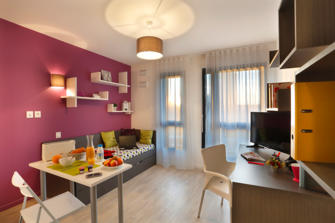 La résidence « City & Park » vous accueille dans un cadre chaleureux et moderne. Située à proximité des commerces, des transports en communs et du centre-ville, le trajet entre votre appartement et votre formation n’est désormais plus un problème ! Les 110 logements que compte la résidence (studios de 20 à 35 m²) sont tous entièrement meublés et équipés pour votre confort une fois sur place : - Literie 1 à 2 personnes selon le type de logement (le linge de literie est fourni ; lit fait à l’arrivée avec une change par quinzaine) - Placard de rangement - Kitchenette complète (plaque de cuisson, évier, frigo, micro-ondes, vaisselle, meubles de rangement) - 1 table, 1 bureau, 3 chaises - Salle de bain et WC - Connexion Internet Haut Débit, ainsi qu’une prise téléphonique et télévision. - Laverie avec lave-linge et sèche-linge en commun - Prêt d’aspirateur et fer à repasser. Tous les appartements sont éligibles aux aides de la CAF et le loyer inclut toutes les charges!