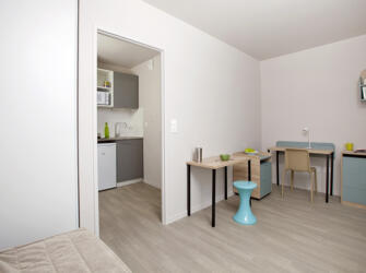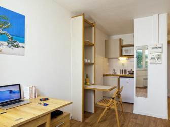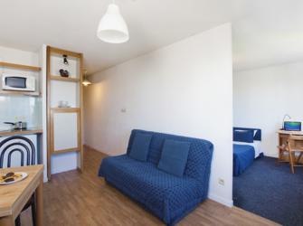 La résidence propose des logements meublés et équipés de type T1 (de 20 à 22m2), T1Bis (de 24 à 35m2) et T2 en duplex (de 32 à 49m2)… Voir la résidence