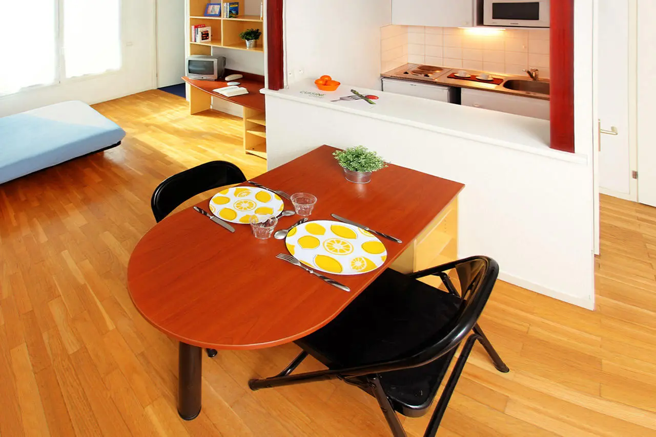 La résidence des Estudines Saint-Nicolas est implantée en plein cœur du quartier de la Part-Dieu, profitant d’une position centrale dans le 3e arrondissement de Lyon. Proche de la gare SNCF et du centre commercial, les locataires peuvent bénéficier d’un lieu de vie dynamique et animé, proche des lignes de métro B et D, et des bus C25 et C6 dont les arrêts se trouvent devant la résidence. Ainsi, les étudiants peuvent rejoindre les campus universitaires en moins de 15 minutes, notamment, l’ISEG, EPITTECH, ICOGES, E-Artsup, ESME-SUDRIA, et l’Université Lyon III. La résidence propose des logements meublés, allant du studio au deux pièces, et tout équipés. La connexion internet est incluse dans le loyer, de même qu’un kit linge. L'accès à la résidence est sécurisé, avec un contrôle à l’entrée et un service d’accueil pour répondre aux questions des locataires. Un parking, une laverie, un service ménage ainsi qu’une salle de réunion sont à disposition sous forme de services à la carte.