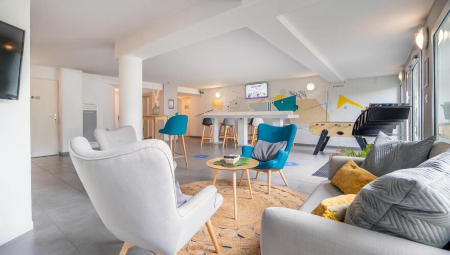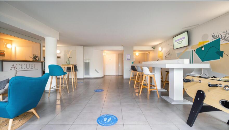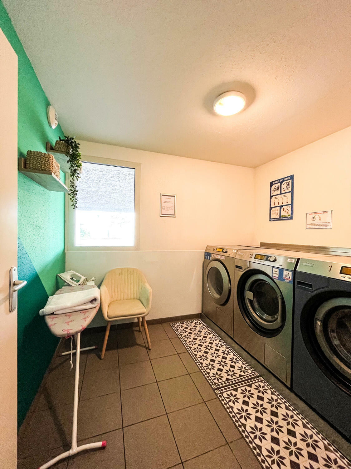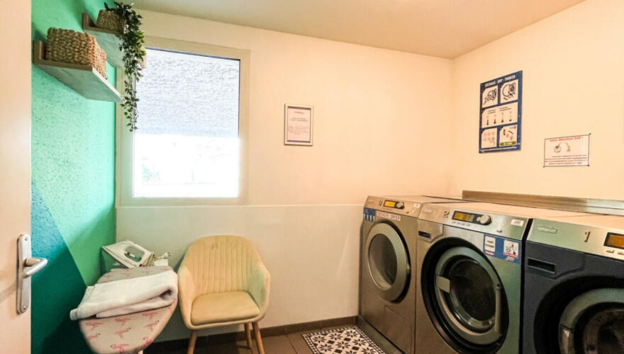 La résidence se compose d’une laverie, d’une salle de fitness ainsi que d’espaces communs (de travail ou de gaming !) à la disposition des étudiants.