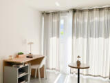 Les appartements disposent d’aménagements modernes et fonctionnels : un séjour composé d’un coin chambre, un placard aménagé, un espace bureau et un coin cuisine équipée et une salle de bains privative.