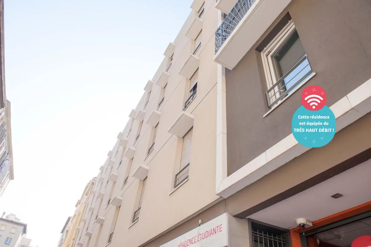 A quelques minutes à pied du centre historique de Marseille et du Vieux-Port, la résidence est implantée dans une zone de choix, en plein cœur du 3e arrondissement marseillais et à quelques pas de la Gare Saint-Charles. Cette résidence, proche des lignes de métro 1 et 2, ainsi que des lignes de tram 1 et2 vous permet de facilement vous déplacer dans Marseille. De nombreux campus sont accessibles à pied, dont l’EPITECH, l’EMD Business School ou encore le campus de l’Université d’Aix-Marseille, qui comprend les UFR des Sciences et des Arts, Lettres, Langues et Sciences Humaines. De nombreux commerces de proximité sont également à la disposition des étudiants, avec supermarchés, boulangeries, et bureaux de poste à deux pas de la résidence. Au sein de la résidence, profitez de nombreux services et animations pour accompagner les étudiants dans une ambiance conviviale. La résidence comprend notamment une salle de sport, un accès internet fibre offert, une salle de réunion ou d’études, un système de vidéosurveillance, la location de linge de maison, un local deux roues, un parking, des distributeurs de boissons et de plats chauds, une laverie et une cafétéria. Services ménage et petit-déjeuner en supplément.