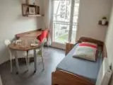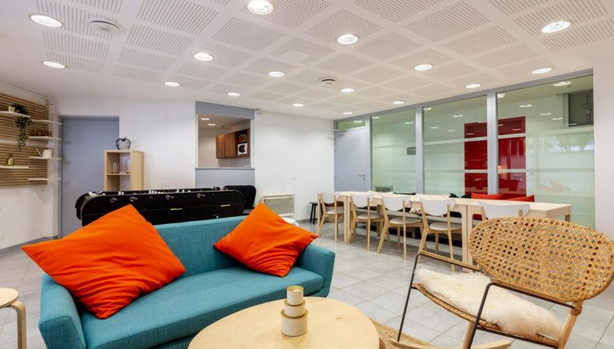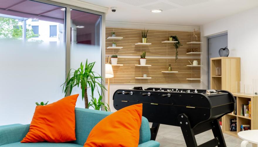 En plein cœur du 7e arrondissement lyonnais, cette résidence bénéficie d’un emplacement de choix, dans un quartier résidentiel dynamique. A moins de 5 minutes à pied du Parc Blandan, de la ligne de métro A et de la ligne 2 de tramway, il est très facile de se déplacer dans Lyon pour découvrir la ville ou se rendre à son campus. Notamment, celui de Lyon 3 se situe à une quinzaine de minutes de la résidence. Située à proximité de nombreux ateliers et galeries d’art, cette résidence convient particulièrement aux étudiants des beaux-arts. Les logements proposés sont modernes et confortables, entièrement équipés, avec kitchenette et salle de bain séparée. De plus, la résidence propose de nombreux services à ses locataires, dont un accès internet fibre offert, une salle de réunion ou d’études, un local à deux roues, un système de vidéosurveillance, la location de linge de main, une laverie et d’une cafétéria. Services ménage et petit-déjeuner en supplément.