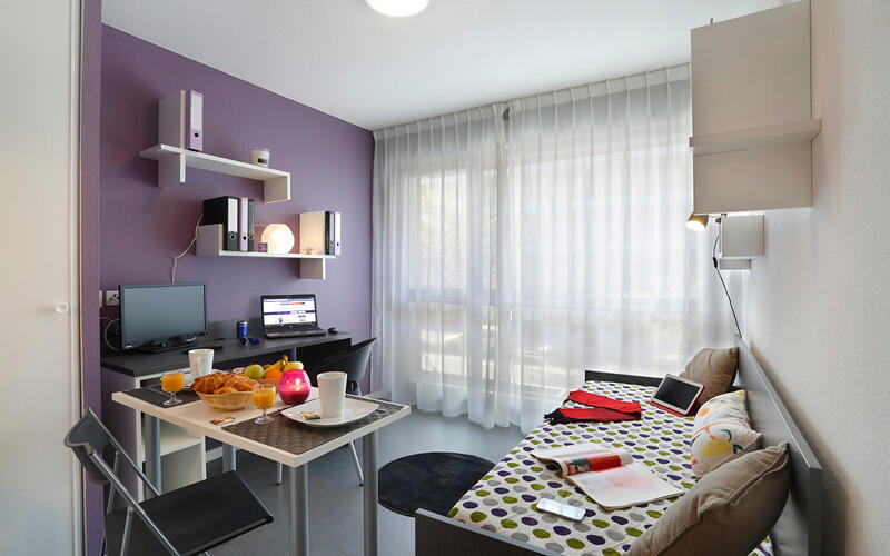 Située à proximité immédiate de l'arrêt de Métro A "Les Arènes", la résidence Néméa Appart'Etud Tolosa bénéficie de nombreux atouts : à 6 mn à pieds de l'arrêt "Les Arènes" desservi par les Métros A et C, le Tramway 1 et les bus 34,46,64,65 et 67, commerces de proximité, trajet direct vers l'Université Le Mirail. Les 118 logements pratiques et confortables sont composés d'une kitchenette équipée avec rangements, plaques de cuisson électrique, four micro-ondes, réfrigérateur, salle d'eau avec douche et WC, d'une pièce à vivre avec lit gigogne, table, chaises, bureau et étagère murale, prises TV et téléphone.