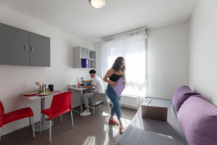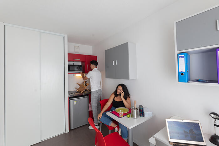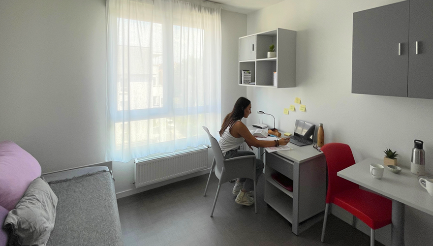 Résidence récente à 2 minutes du Tram! Située à 10 min du Campus Porte des alpes de l'Université Lyon 2, la résidence Studélites Bron Lumière vous propose des appartements étudiant fonctionnels et confortables. Elle est sécurisée et se compose de 4 étages avec ascenseurs. Du Studio au T2, les logements sont neufs, contemporains, entièrement meublés et équipés. L'eau chaude et le chauffage sont compris. La résidence dispose d'espaces communs, de loisirs et de travail ainsi que de services de qualité (accueil, laverie, cafétéria, salle de sport, sauna, internet, service petit déjeuner, local vélo, service ménage) qui facilitent votre vie quotidienne. La résidence se situe à 2 minutes du tramway ainsi que des lignes de bus, ce qui vous permet un accès très rapide à vos lieux d'études et de loisirs. De plus, tous les commerces et les commodités sont à proximité immédiate ce qui en fait un emplacement privilégié pour vous simplifier la vie. Retrouvez une résidence étudiante où convivialité rime avec sérénité, dans un cadre idéal pour réussir vos études.