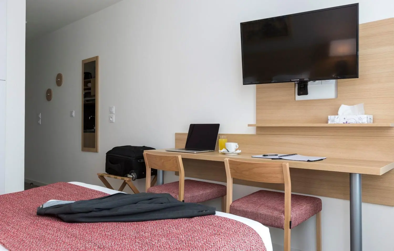 Studio 1 : De 17 à 18.5M², les logements sont équipés d’un coin cuisine comprenant micro-ondes, plaques vitrocéramiques et réfrigérateur, d’une salle d’eau avec WC, d’un salon-chambre meublé avec 1 bureau, 1 table, 1 Chaise, 2 poufs et 1 lit gigogne de 1.90m X 0.90 m. Possibilité de Studio avec Terrasse.