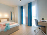 Chaque logement est équipé d’un coin cuisine avec micro-ondes, plaque de cuisson, réfrigérateur et hotte, d’une salle d’eau avec WC et sèche serviette, et d’un salon-chambre meublé avec lit 120x200cm.