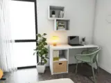 La résidence vous propose des appartements entièrement meublés et équipés (climatisation, kitchenette avec hotte, micro-ondes, plaque de cuisson, frigo avec partie congélation), change des draps tous les 15 jours, un accès illimité à la WIFI et à la salle de sport, un service accueil (disponible 5j/7) avec prêt d’aspirateur, de fer et table à repasser et de sèche-cheveux !