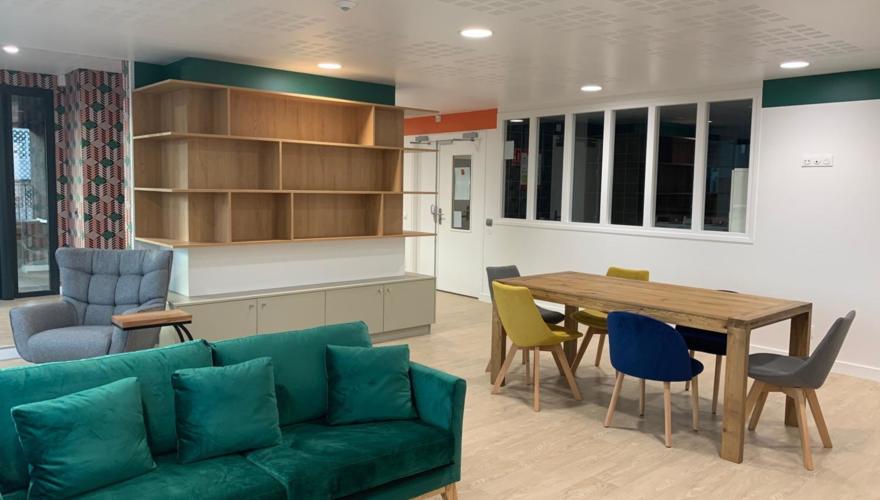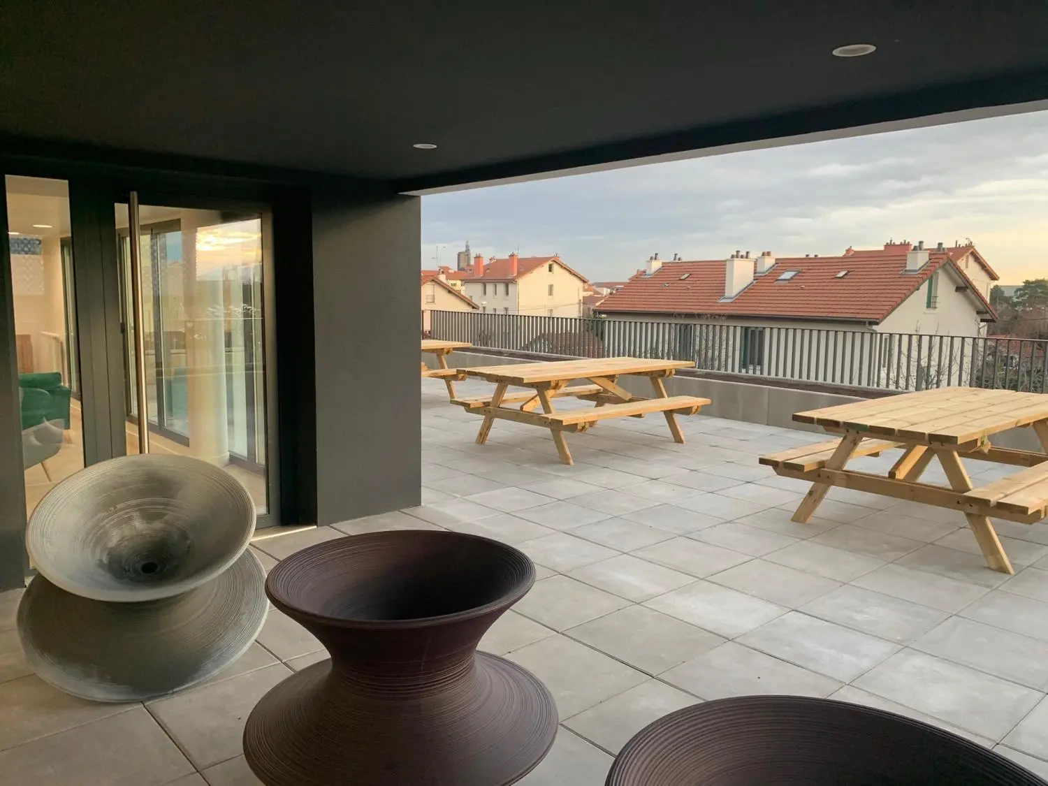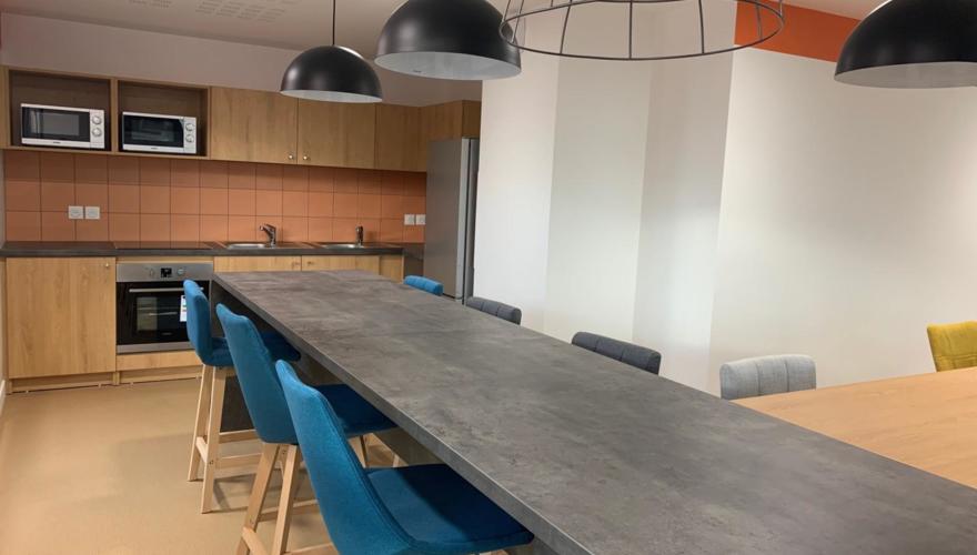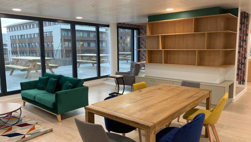 • Des espaces communs privilégiés : une salle de sport avec sa terrasse où vous pouvez venir jouer entre voisins au ping-pong ; la Chill Room où vous pourrez travailler en groupe ou simplement vous détendre, un Kitchen Lab pour préparer et partager de bons petits plats ainsi qu'une grande terrasse extérieure pour profiter du beau temps.