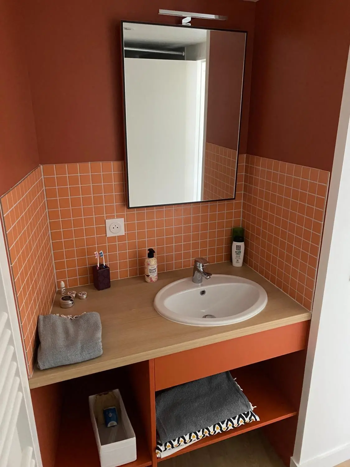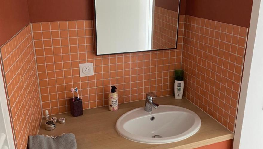 Salle de bain privative, optimisée et fonctionnelle, avec sanitaire et douche.