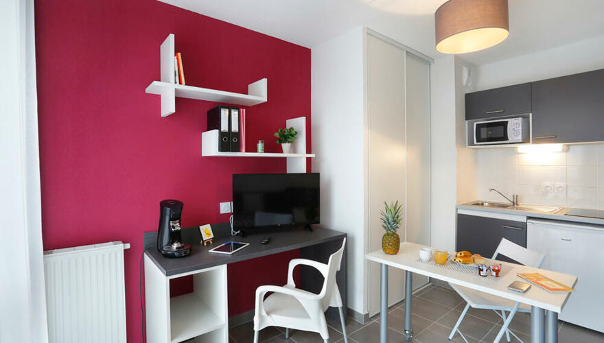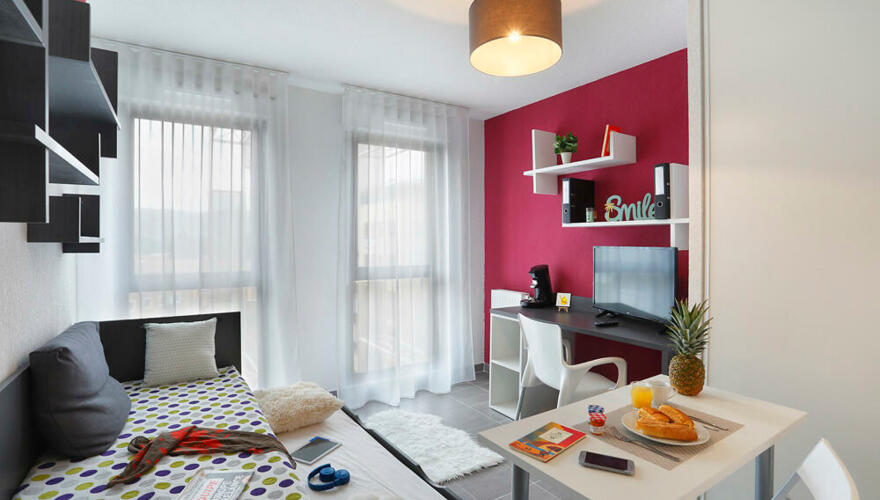 Cette résidence étudiante neuve, contemporaine et entièrement sécurisée propose des studios meublés et pourvus d'une cuisine tout équipée. De nombreuses prestations sont incluses : l'accès Internet via le Wi-Fi, une salle de sport, des espaces communs, un service d'accueil sur place.
