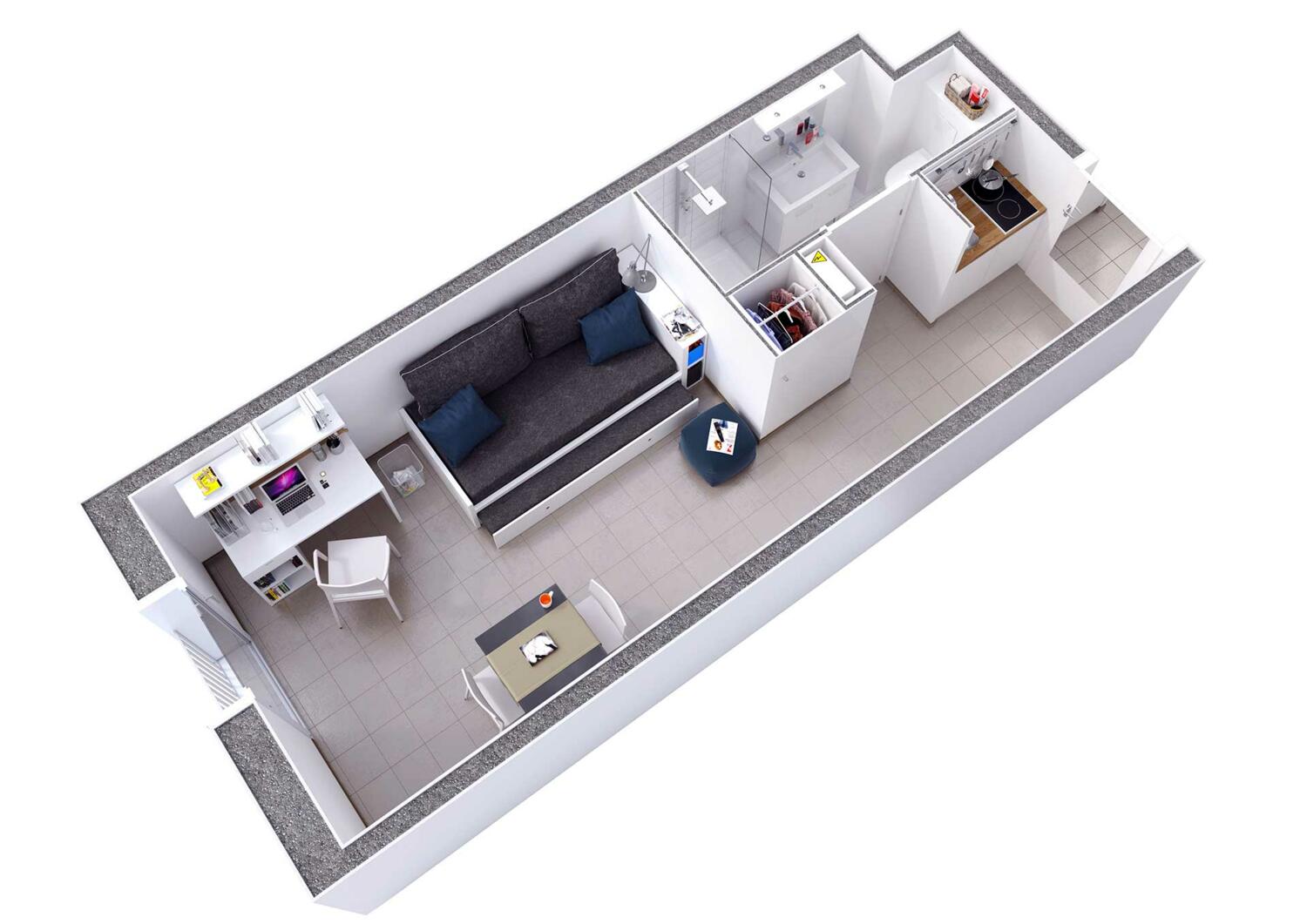 Composée de 154 logements meublés et d’espaces dédiés au travail, à l’échange et à la réflexion (coworking, espace détente, coin cafèt’...) elle offre un cadre de vie idéal pour réussir ses études. Lieux de vie tout confort, décoration moderne et résidence ultra-connectée : tous les ingrédients sont réunis pour répondre aux nouvelles attentes des étudiants.