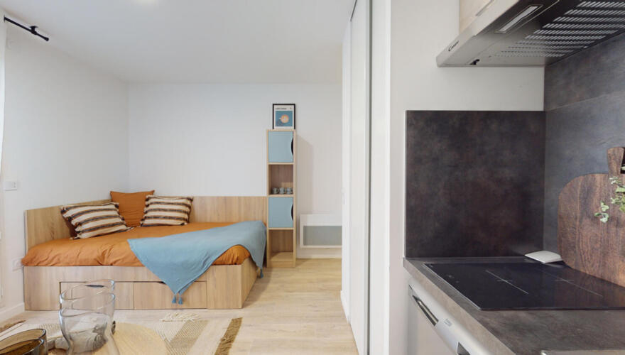 Idéalement située proche transports et commodités, cette résidence sécurisée vous propose des logements tout équipés avec coin cuisine, salle de bain, espace de travail et rangements. Notre équipe sera à votre disposition du lundi au vendredi.