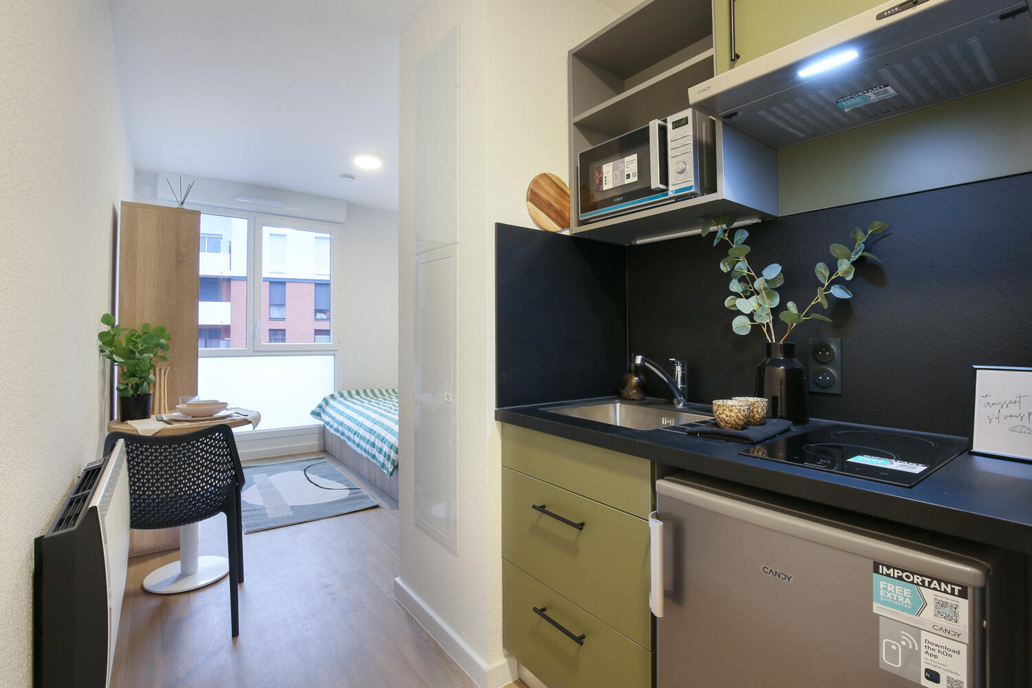 Chaque logement est entièrement équipé : cuisine fonctionnelle, salle de bain privative, mobilier contemporain et connexion internet haut débit. Les espaces communs favorisent les échanges et la détente : salle de sport tout équipée, espaces de coworking calmes et décorés avec soin, coliving chaleureux pour des moments entre amis, et extérieurs aménagés avec terrasse, boulodrome, barbecue et table de ping-pong.
