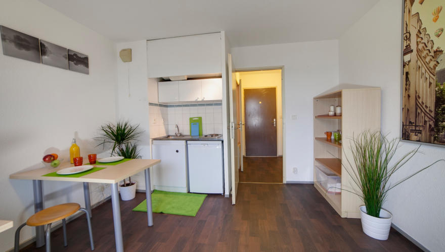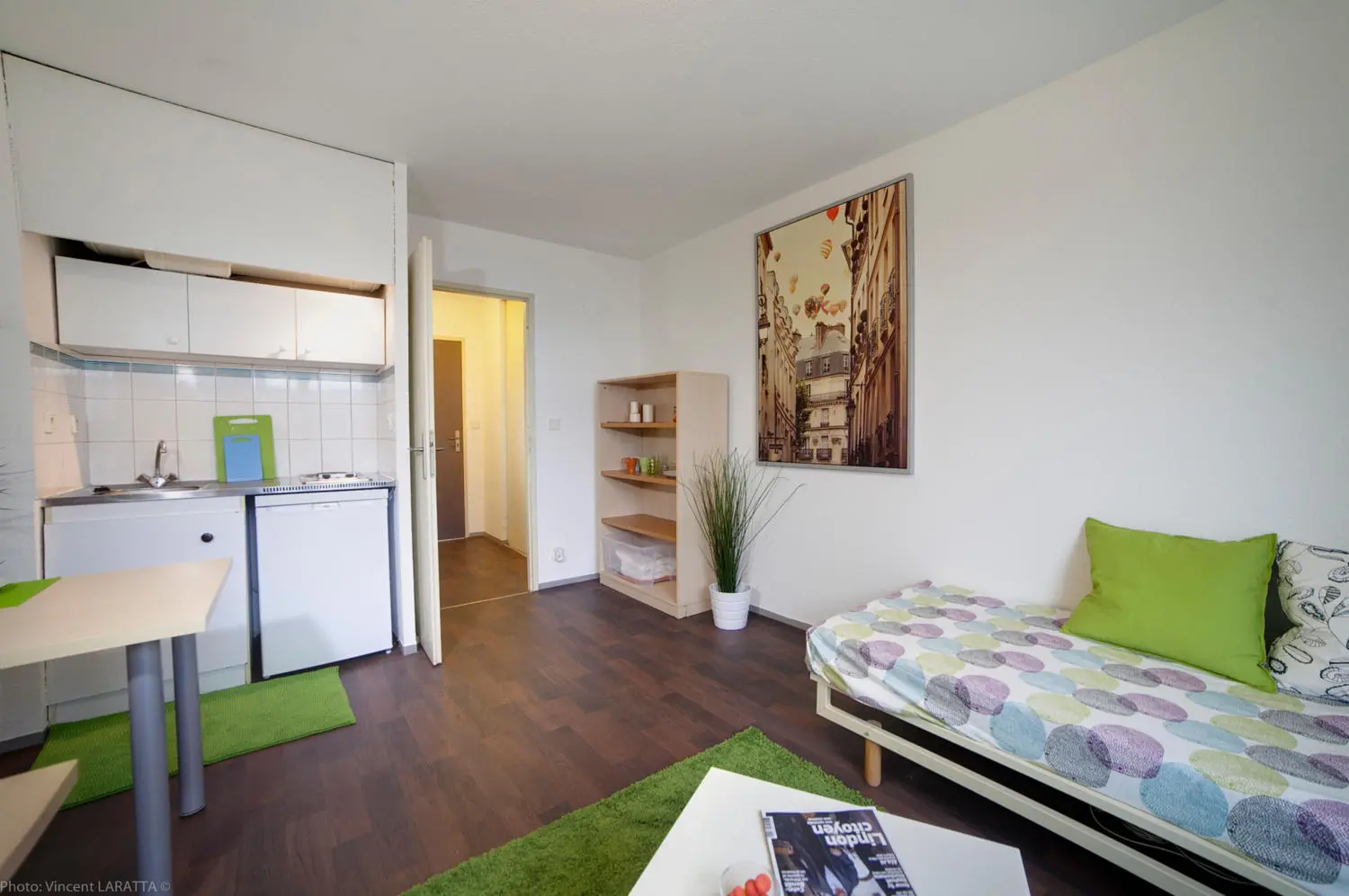 Avec ses logements modernes et bien agencés, la résidence met à disposition des studios entièrement meublés et équipés. Chaque logement est pensé pour maximiser le confort et l'efficacité, incluant une kitchenette fonctionnelle avec plaques de cuisson et réfrigérateur, ainsi qu’une salle de bain privative. Un espace bureau ergonomique est également aménagé pour permettre aux étudiants de travailler dans les meilleures conditions.